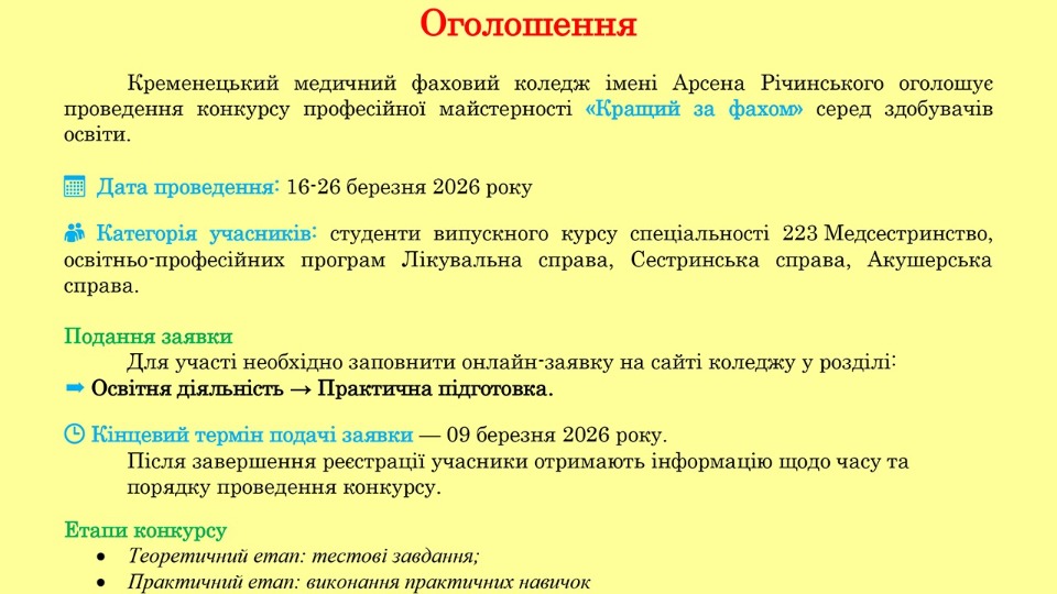 Конкурс професійної майстерності "Кращий за фахом" 2026
